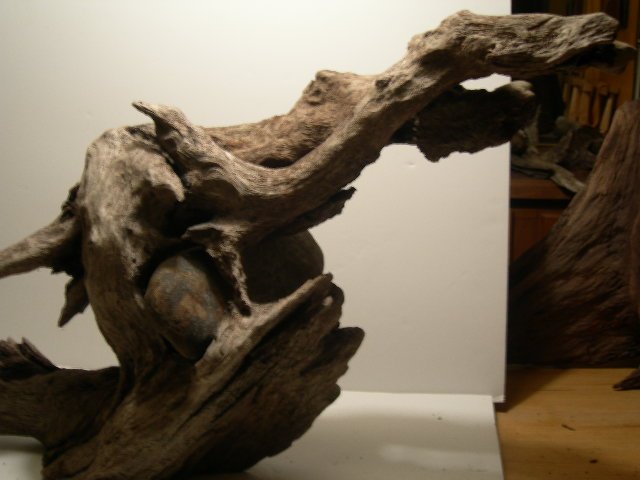 below are a couple of very unique pcs i recently came across. both pcs have a good size river rock that the wood has grown around. the rock is much more visable in the 1st piece.