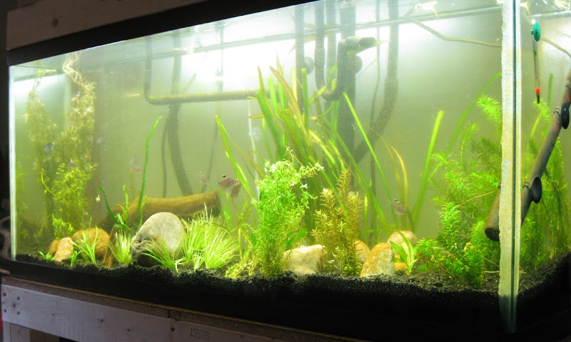Plans for the near future: more fish, DIY CO2, and a black background. I REALLY wish I would've painted the background first during the long period that I just had the tank sitting around, but alas I didn't. So now I'm not sure how I'm going to do it, whether I'll find something to tape on there or... something else.