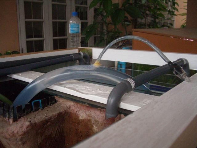 I've tried some with the overflow-pipes and bits and pieces of pvc-pipes to reduce the noise. Looks ok now, but will work on some improvements.