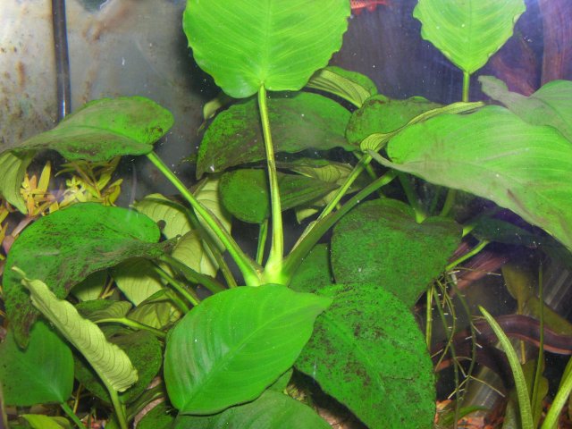 I read in Amano's TFH article a couple of months ago that he uses some sort of natural antiseptic or something to prevent algae on the leaves. I haven't been able to find out exactly what he was talking about, hence my experiment with Melafix which has tea tree oil in it.