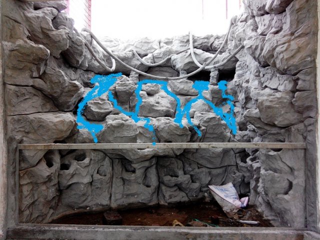 the pipes u see in the first pics were hidden using the cement work merging into rock, leaving only the tip pipe out as u see in the 5th and 6th pic. that too would be eventually hidden as plants come.Pls give ur comments. Next lies painting of the rocks and front glass fixing. then testing for leaks and finally planting