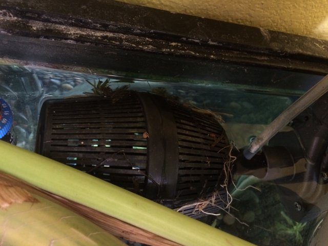 Both tanks are 125 gallons. The planted tank is a community tank with <30 small fish. I have Inkbird heater controllers on each tank with about 600w of heaters on each. There is an FX6 on this tank and a 407 on the cichlid tank. The water pumps up through the pipe on the right in the corner. It is nearly 6' long and filled with expanded clay pellets as bio media. There is a venturi air intake before the impeller so a load of bubbles get chopped into microbubbles just before spending the next 6' slowly rising in the water column. I do not have a separate air source in these tanks.