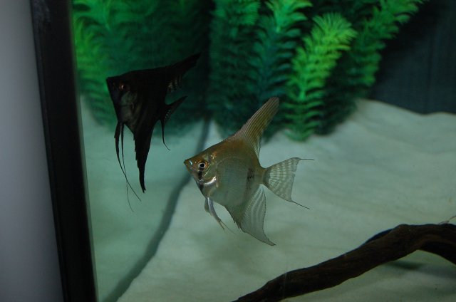 Took the goldfish out and put them in my large koi pond to grow out some more and put these cute guys in. Theres 2 of each color, still waiting to get paid to pick up 2 or 4 more of differnt colors. There are also 8 jumbo Neons, I'm seeing how the Angels act towards them and if need be I will fish them out and put them in the 29.
