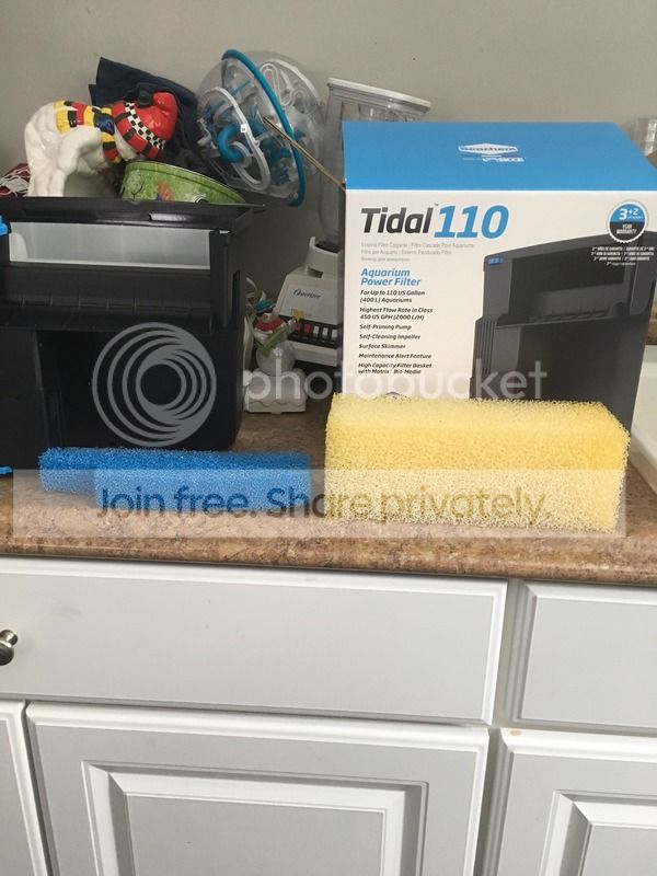 Below is a pic of the Tidal 110 sitting on top of an AC110 and a mechanical filtration sponge for the Tidal 110 on the left and an Aquaclear 110 sponge on the right.