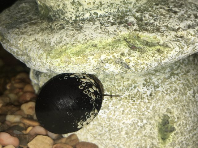 So I just got a black mystery snail today from pet smart to be a tank mate to my betta fish. I’ve never had a snail before. I think it’s a male but I’ve named it Gary whatever it actually is. But I’m curious about these flat-ish white dots on its shell. Any help on identifying them and on what to do about it would be great, thanks!