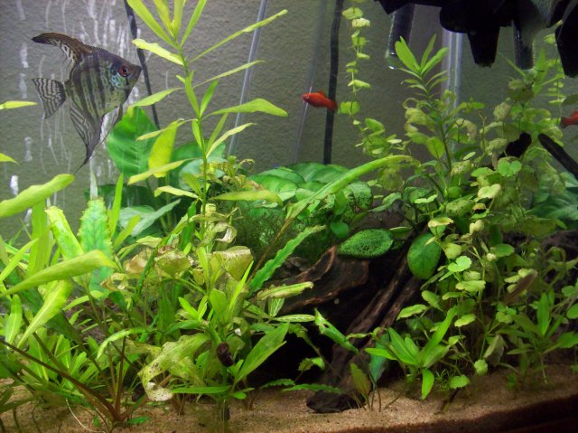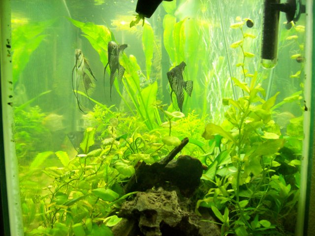 You've planted everything perfectly and the fish are looking great aswell, I really hope that the angels don't eat the neons!