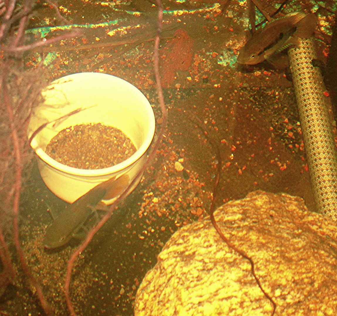 In my one 75 gal I have 6 Rainbow Cichlids I grew out over the last 7 months, along with 6 boseman rainbows, a bristlenose pleco, 2 australian rainbows, and a syno cat. 2 pairs have formed in the ranbow cichlids, and I'm looking to do one of the following:
